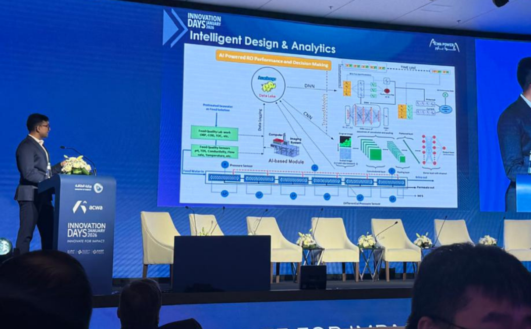 During the Innovation Days event, ACWA Power presented key elements of the joint research, highlighting how DESAL’s work is contributing to real operational discussions. The research explores the use of AI-driven monitoring frameworks, combining sensor data with membrane surface imaging, to detect fouling at early stages and support a shift from reactive to predictive maintenance strategies.